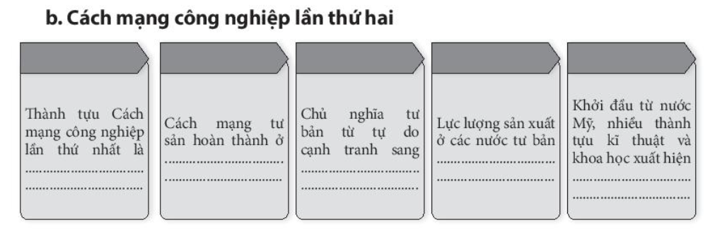 Câu 5. Hoàn thành bảng thống kê hai cuộc cách mạng công nghiệp thời cận đại theo các tiêu chí dưới đây:
