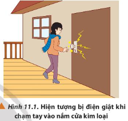 Vào những ngày thời tiết lạnh, đặc biệt là vào mùa đông, ta thường hay gặp một số hiện tượng như: bị điện giật khi chạm tay vào tay nắm cửa kim loại (Hình 11.1) hay nghe tiếng lách tách khi thay quần áo. Vậy nguyên nhân của hiện tượng này là gì?