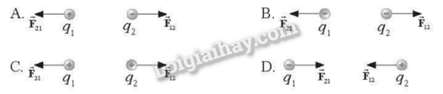 Trong các hình biểu diễn lực tương tác tĩnh điện giữa các điện tích (có cùng độ lớn điện tích và đứng yên) dưới đây. Hình nào biểu diễn không chính xác?