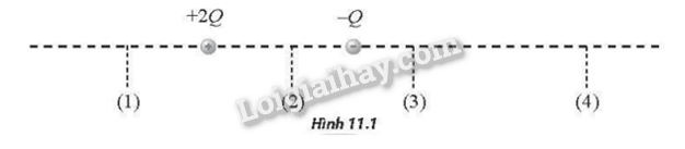 Hai điện tích điểm +2Q và -Q được đặt cố định tại hai điểm như Hình 11.1. Phải đặt điện tích q0 ở trị trí nào thì lực điện do +2Q và -Q tác dụng lên điện tích q0 có thể cân bằng nhau?