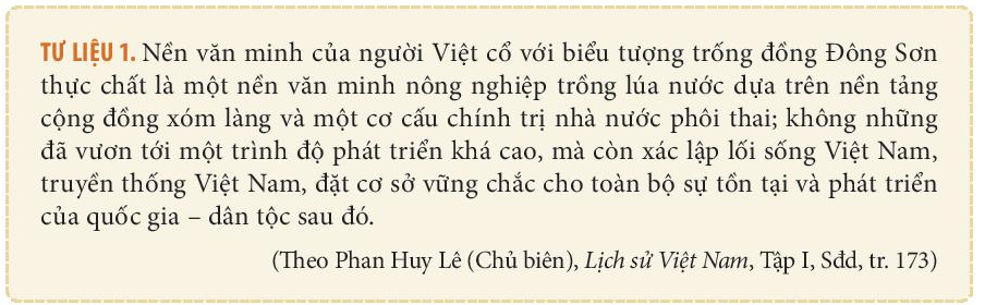 Đọc tư liệu mục 1, chú ý đến các từ khóa “văn minh lúa nước”, “xác lập lối sống”, “đặt cơ sở”.