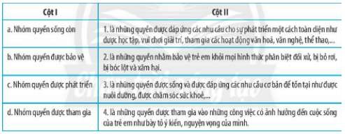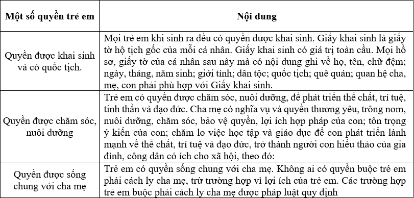 Câu 5. Quyền trẻ em không bao gồm quyền nào dưới đây?