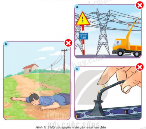 Quan sát Hình 11.3 và cho biết các nguyên nhân gây ra tai nạn điện.