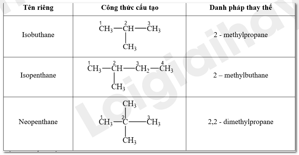 Gọi tên các hợp chất isobutane, isopentane và neopentane theo danh pháp thay thế