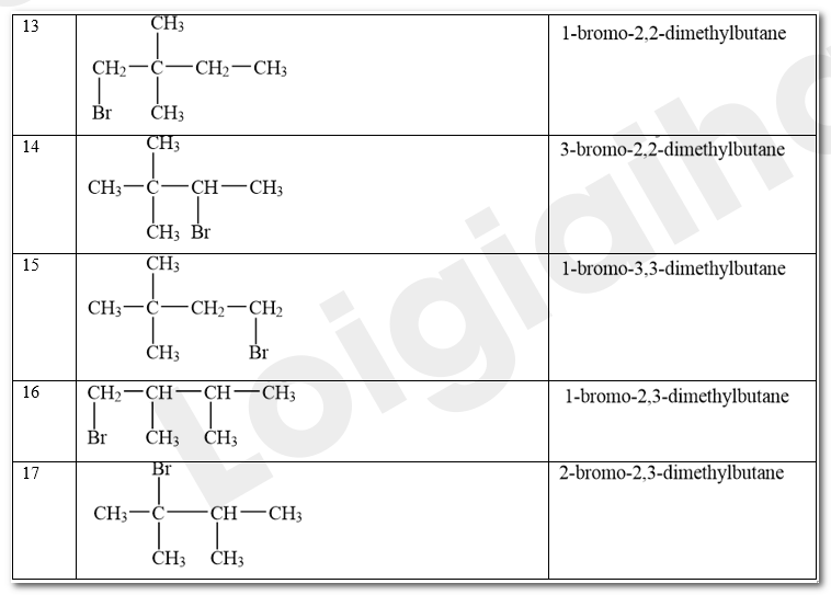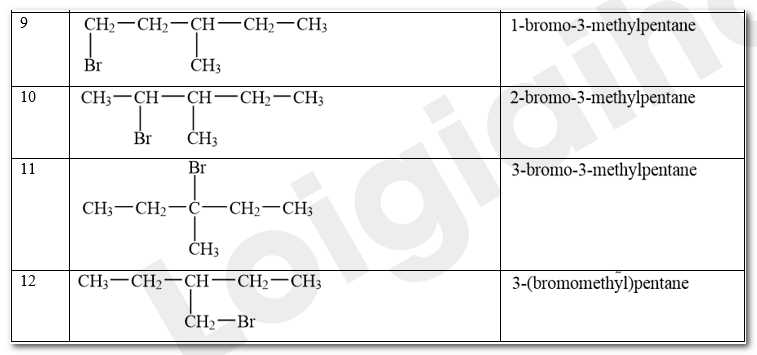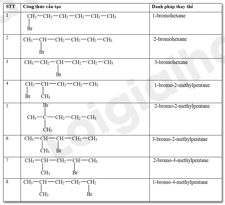 Các sản phẩm monobromo có thể tạo thành trong phản ứng giữa bromine và hexane ở Thí nghiệm 1:
