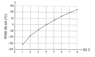 Đồ thị dưới đây thể hiện mối tương quan giữa nhiệt độ sôi và số nguyên tử carbon trong phân tử alkane không phân nhánh được biểu diễn như sau: