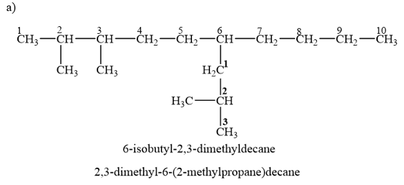 + Để đọc tên nhánh này, carbon của nhánh phức tạp gắn vào mạch chính được đánh số 1. Tên nhánh phức tạp được cho vào ngoặc. Khi gọi tên nhánh, ưu tiên theo thứ tự chữ cái của nhánh, không ưu tiên theo chữ cái của các tiếp đầu ngữ iso, di, tri,… Ví dụ: isobutyl vẫn ưu tiên hơn dimethyl, mặc dù “i” đứng sau “d”.