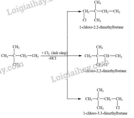 Khi cho 2,2-dimethylbutane tác dụng với chlorine thu được 3 dẫn xuất monochloro.