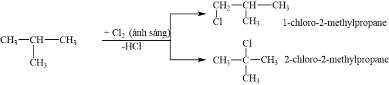 Cho 2-methylpropane tác dụng với chlorine (tỉ lệ mol 1 : 1, có ánh sáng) thu được 2 sản phẩm thế monochloro.