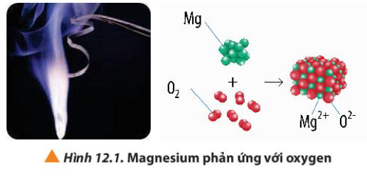 1. Quan sát Hình 12.1, hãy viết quá trình nhường và nhận electron trong phản ứng giữa magnesium và oxygen