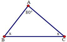 Xét tam giác $ABC$  có \(\widehat B = {80^0}.\) Theo định lý về tổng ba góc trong tam giác ta có