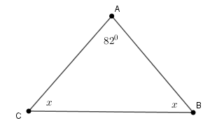 Xét tam giác $ABC$  có :$\widehat A + \widehat B + \widehat C = {180^0} \Rightarrow \widehat B + \widehat C = {180^0} – \widehat A = {180^0} – {82^0} = {98^0}$.