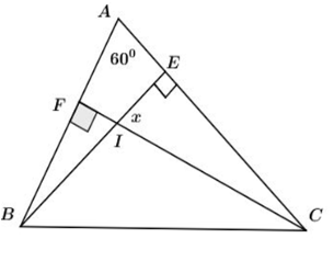 Xét \(\Delta IEC\) ta có: \(\widehat {IEC} + \widehat {ECI} + \widehat {EIC} = {180^0} \Leftrightarrow {30^0} + x + {90^0} = {180^0}\)