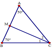 Cho tam giác $ABC$  có $\widehat A = {50^0},\widehat B = {70^0}.$ Tia phân giác của góc C cắt cạnh AB tại M. Tính \(\widehat {AMC}\) và \(\widehat {BMC}.\)