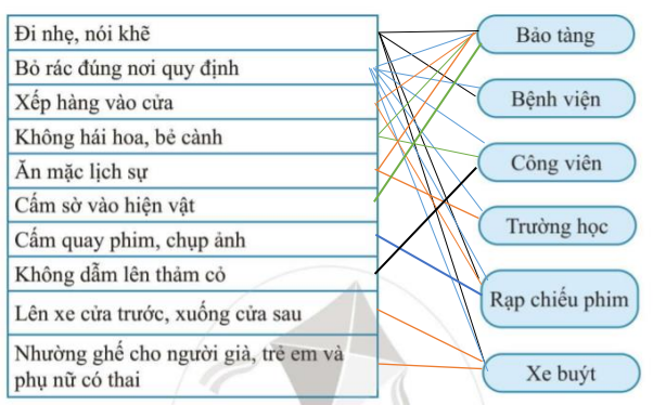 Em hãy nối mỗi quy định với những nơi công cộng cho phù hợp.