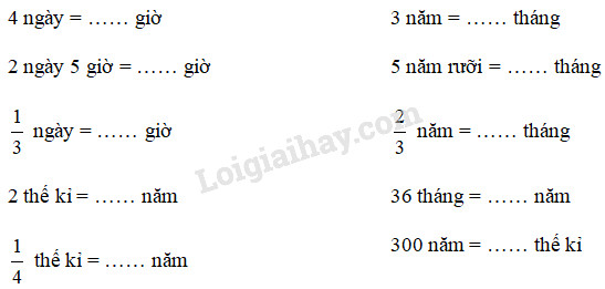 – 1 ngày = 24 giờ nên để đổi một số từ đơn vị ngày sang đơn vị giờ ta nhân số đó với 24.