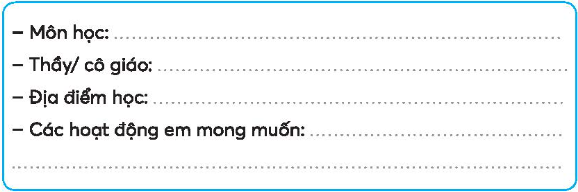 Điền vào phiếu dưới đây các thông tin về một giờ học em mong muốn.
