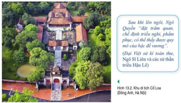 Bước 2: Quan sát hình 13.2 biết được đó là khu di tích Cổ Loa, kinh đô của nhà Ngô, sơ đồ 13.1 là sơ đồ tổ chức bộ máy nhà nước thời Ngô.