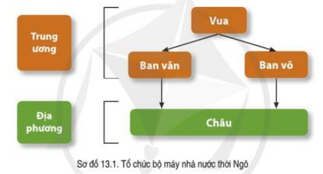 Bước 2: Quan sát hình 13.2 biết được đó là khu di tích Cổ Loa, kinh đô của nhà Ngô, sơ đồ 13.1 là sơ đồ tổ chức bộ máy nhà nước thời Ngô.