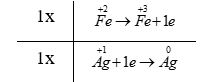 + Quá trình oxi hóa: \(\mathop {Fe}\limits^{ + 2} \to \mathop {Fe}\limits^{ + 3} + 1e\)