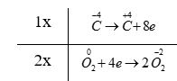 + Quá trình oxi hóa: \(\mathop C\limits^{ – 4} \to \mathop C\limits^{ + 4} + 8e\)