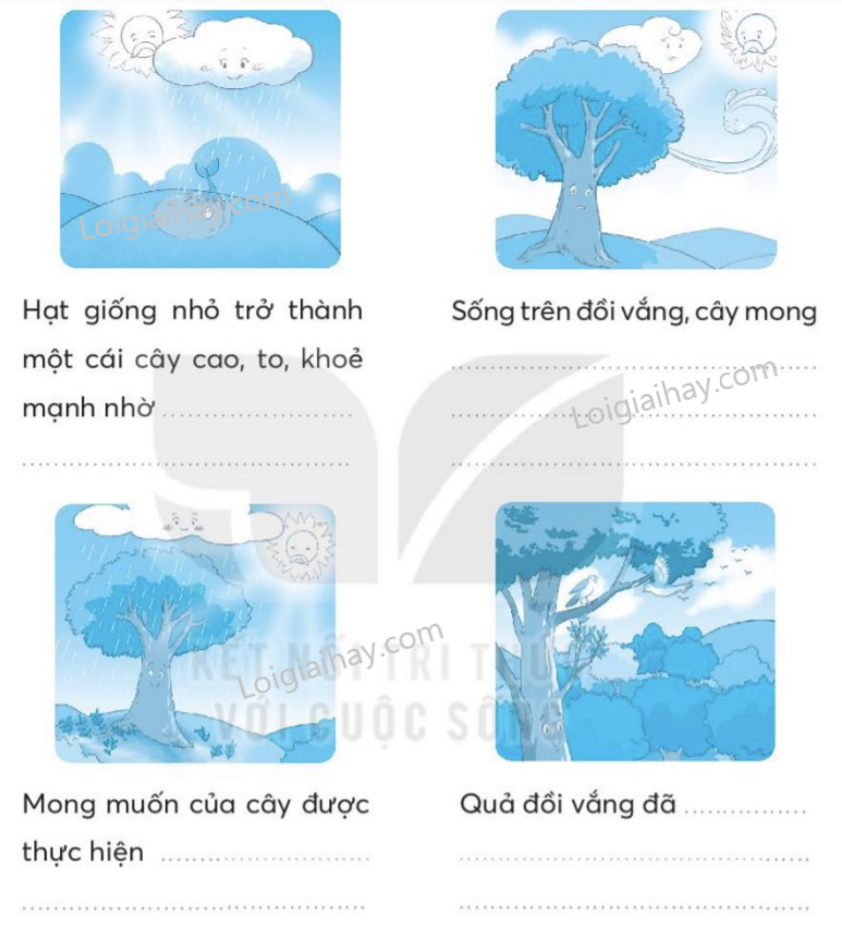Em quan sát kĩ các bức tranh và dựa vào nội dung câu chuyện Hạt giống nhỏ để viết tiếp câu.