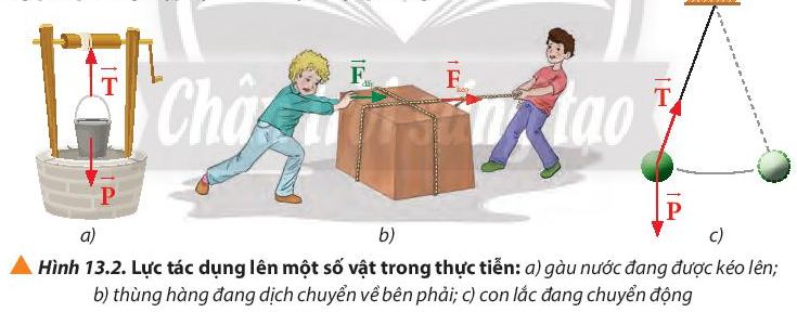 1. Quan sát Hình 13.2, nêu ra những lực tác dụng lên từng vật chuyển động
