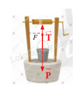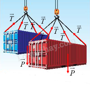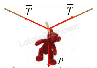 Các lực tác dụng lên móc treo là trọng lực \(\overrightarrow P \) và các lực căng dây \(\overrightarrow T \)