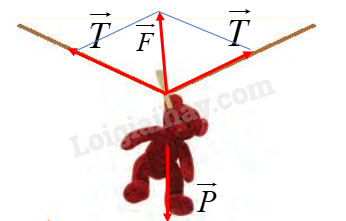 b) Vẽ hình để xác định lực tổng hợp của các lực do dây treo tác dụng lên gấu bông.