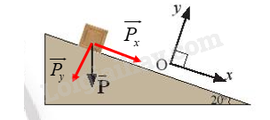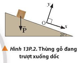 2. Một chiếc thùng gỗ khối lượng m đang trượt xuống từ một dốc nghiêng 20so với phương ngang như Hình 13P.2. Em hãy phân tích thành phần vectơ trọng lực tác dụng lên thùng gỗ theo các phương Ox và Oy.
