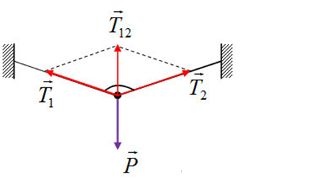 Gọi hợp lực của hai lực căng dây là \(\overrightarrow {{T_{12}}} \)
