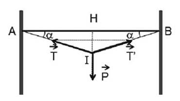 \( \to T = \dfrac{P}{{2\sin \alpha }} = \dfrac{{mg}}{{2\sin \alpha }} = \dfrac{{6.10}}{{2.0,124}} = 241,9(N)\)
