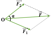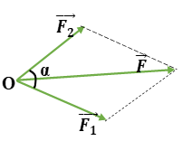 Độ lớn của hợp lực: \(F = \sqrt {F_1^2 + F_2^2 + 2{F_1}{F_2}.\cos \alpha } {\rm{ }}\)