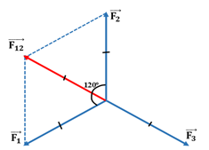 Vì  \(\left\{ \begin{array}{l}{F_1} = {F_2}\\\left( {\overrightarrow {{F_1}} ;\overrightarrow {{F_2}} } \right) = {120^0}\end{array} \right. \Rightarrow \left\{ \begin{array}{l}{F_{12}} = {F_1} = {F_2}\\\left( {\overrightarrow {{F_{12}}} ;\overrightarrow {{F_2}} } \right) = {60^0}\end{array} \right.\)