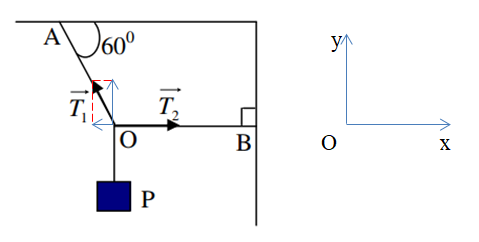 Theo phương Oy: \({T_1}\sin {60^0} = P \to {T_1} = \frac{P}{{\sin {{60}^0}}} = \frac{{2P}}{{\sqrt 3 }}\)