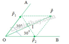 Áp dụng quy tắc hình bình hành: Từ điểm ngọn của vecto \(\overrightarrow F \) lần lượt vẽ các đoạn thẳng song song với OA và OB ta đượcr  \(\overrightarrow {{F_1}} \) trên OA và \(\overrightarrow {{F_2}} \) trên OB sao cho: \(\overrightarrow F  = \overrightarrow {{F_1}}  + \overrightarrow {{F_2}} \)