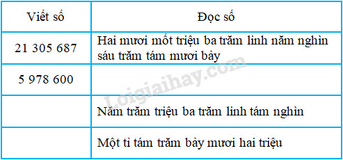 Để đọc các số ta tách số thành từng lớp, từ lớp đơn vị đến lớp nghìn rồi đến lớp triệu, mỗi lớp có ba hàng. Sau đó dựa vào cách đọc số có tới ba chữ số thuộc từng lớp để đọc và đọc từ trái sang phải.