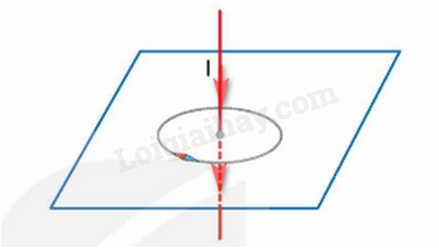 Đặt một kim nam châm nhỏ trên mặt phẳng vuông góc với dòng điện thẳng. Khi cân bằng, kim nam châm nằm ở vị trí như Hình 14.11. Hãy xác định chiều của dòng điện chạy qua dây dẫn
