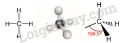 Trong phân tử methane, bốn liên kết C – H giống nhau tạo với nhau một góc 109,5o và hướng về 4 đỉnh của một hình tứ diện đều.