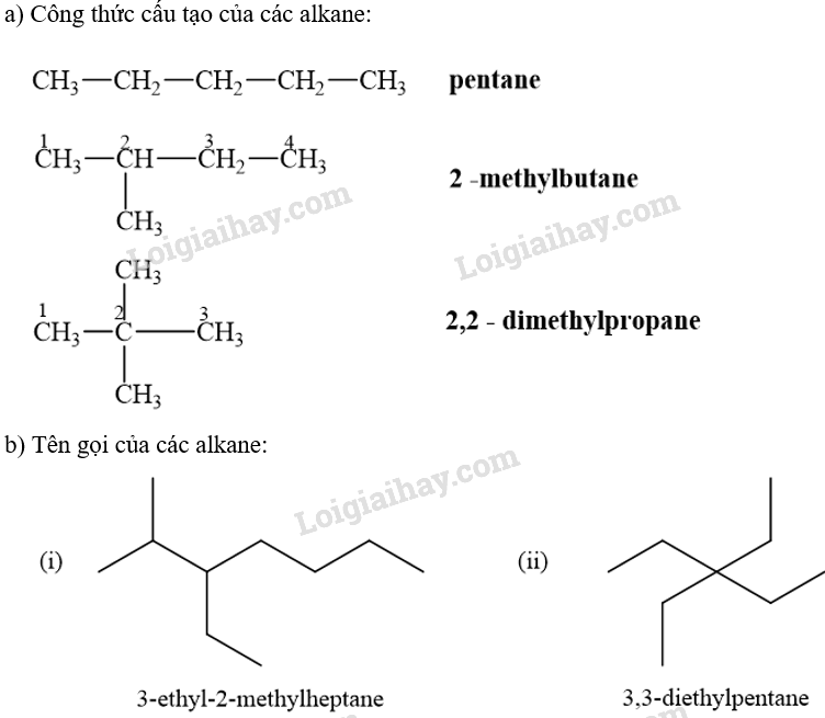 a) Viết công thức cấu tạo của các alkane có tên gọi sau: