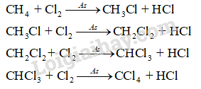 Khi trộn methane với chlorine và chiếu ánh sáng tử ngoại thu được 4 sản phẩm.