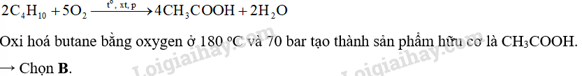Oxi hoá butane bằng oxygen ở 180 oC và 70 bar tạo thành sản phẩm hữu cơ X duy nhất. X là