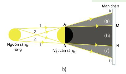 6. Quan sát các vùng được kí hiệu (a), (b) và (c) trên Hình 15.6b để chỉ ra đâu là vùng tối, đâu là vùng nửa tối.