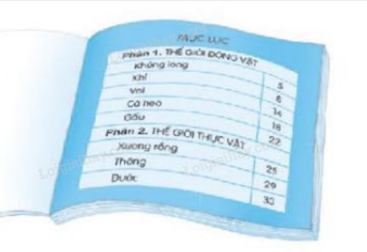 Đọc mục lục ở tranh bên và điền thông tin vào chỗ trống.