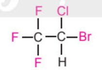 Trong y khoa, gây mê là phương pháp làm bệnh nhân mất ý thức, phục hồi được sau một thời gian, không đau và đảm bảo an toàn trong suốt quá trình phẫu thuật. Halothane được dùng làm thuốc gây mê, phù hợp cho nhiều độ tuổi, ít ảnh hưởng đến sức khoẻ của bệnh nhân trong và sau phẫu thuật. Công thức cấu tạo của phân tử halothane là:
