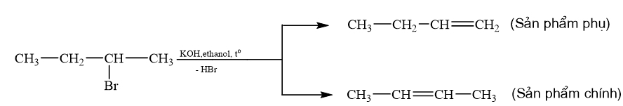 Nguyên tử halogen (X) ưu tiên tách ra cùng với nguyên tử hydrogen (H) ở nguyên tử carbon bên cạnh có bậc cao hơn, tạo ra sản phẩm chính (Quy tắc Zaitsev).