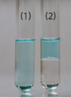 Ống nghiệm (2) chứa dichloromethane vì dichloromethane không tan trong nước (có trong dung dịch CuSO4 loãng), làm dung dịch trong ống nghiệm bị tách lớp.