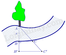 \(\frac{{AB}}{{AB’}} = \frac{{BC}}{{B’C’}} \Rightarrow \frac{x}{{x + 20}} = \frac{{30}}{{40}} \Rightarrow x = 60\) m.