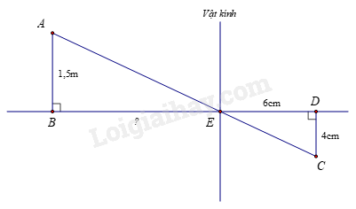 \( \Rightarrow EB = \frac{{ED.AB}}{{CD}} = \frac{{6.150}}{4} = 225\) (cm)