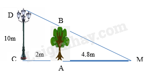 \( \Leftrightarrow \frac{{AB}}{{10}} = \frac{{4,8}}{{6,8}} \Rightarrow AB = \frac{{4,8.10}}{{6,8}} \approx 7\) (m)
